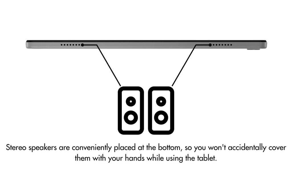The dual speakers deliver crisp sound, perfect for listening to music or podcasts. Connect your tablet wirelessly to your TV for a bigger viewing experience with Wireless Display.