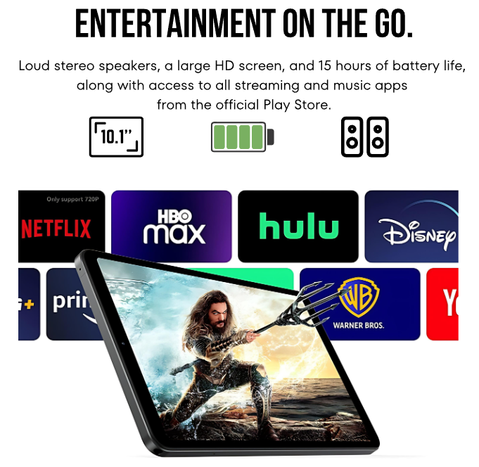 The 10.1″ screen offers crystal-clear visuals with minimal bezels, giving you a comfortable viewing experience for reading, watching, or browsing. Its bright display makes it easier to read emails, watch your favourite shows, or enjoy video calls with family. With its sleek full-glass screen, a rare find in this price range, every moment becomes a cinematic delight, backed by remarkable durability.